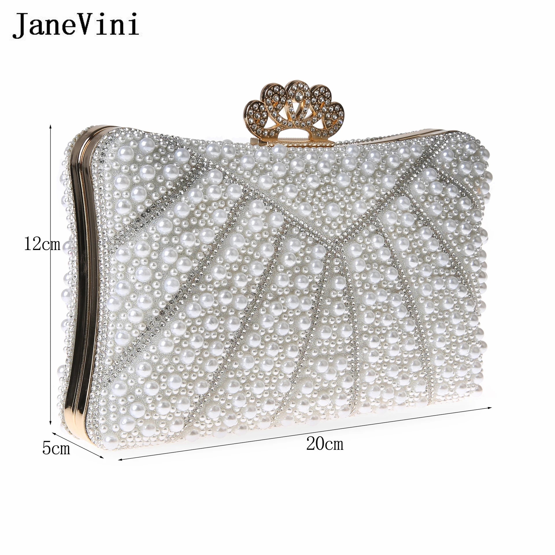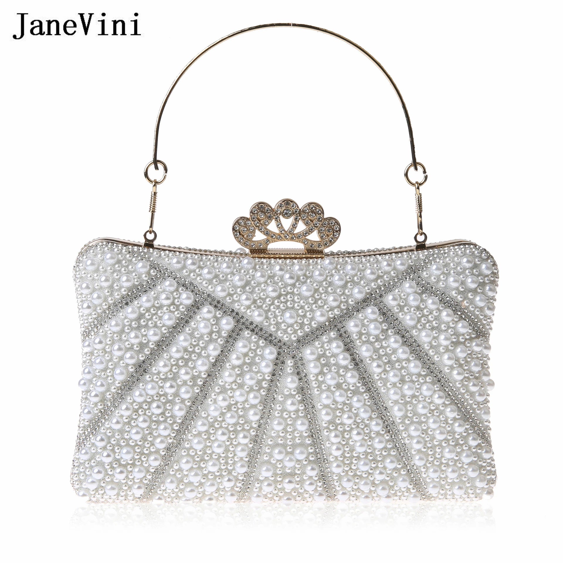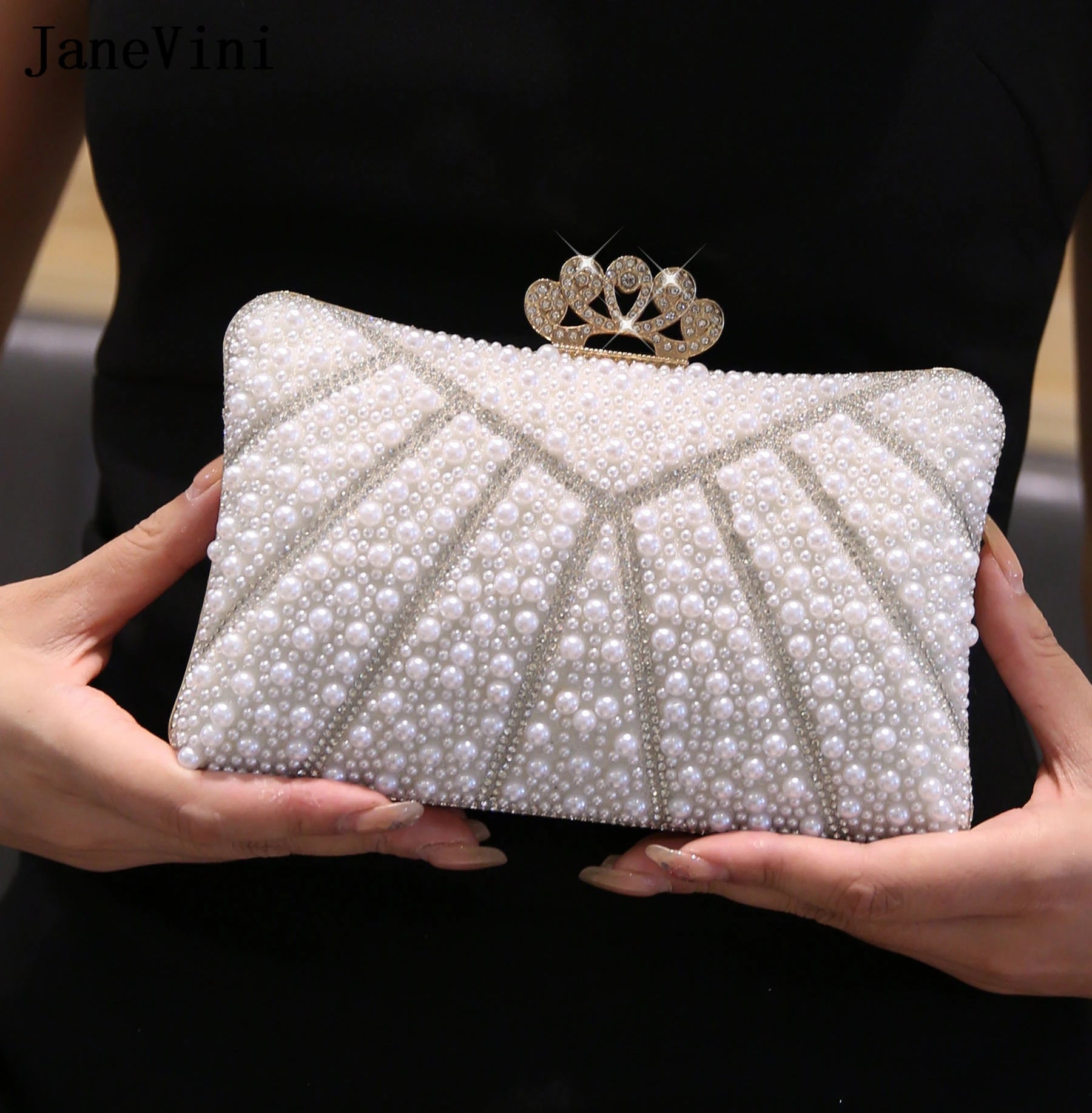 JaneVini Fashion Rhinestone Pearls Hand Bags for Women Ladies Crown Luxury Evening Party Clutch Bag Portable Chain Shoulder Bags